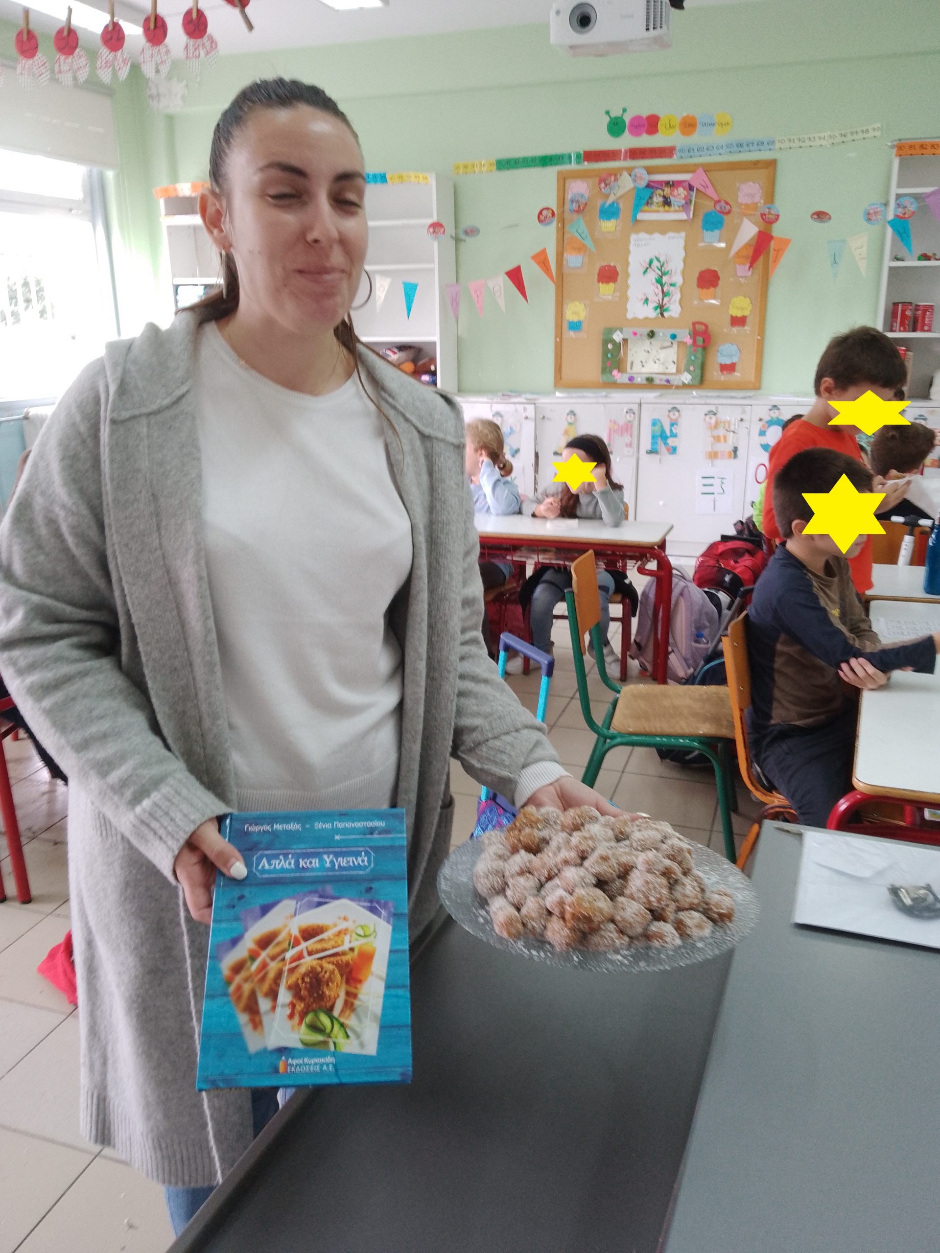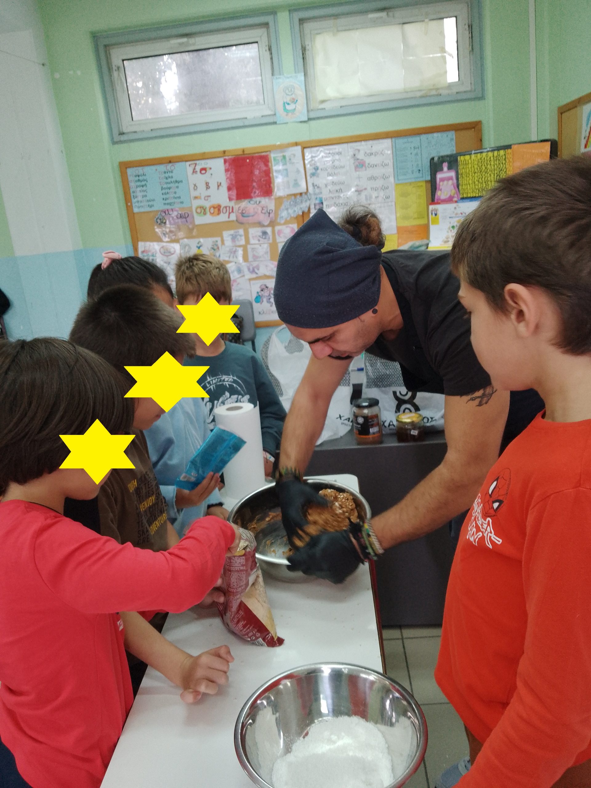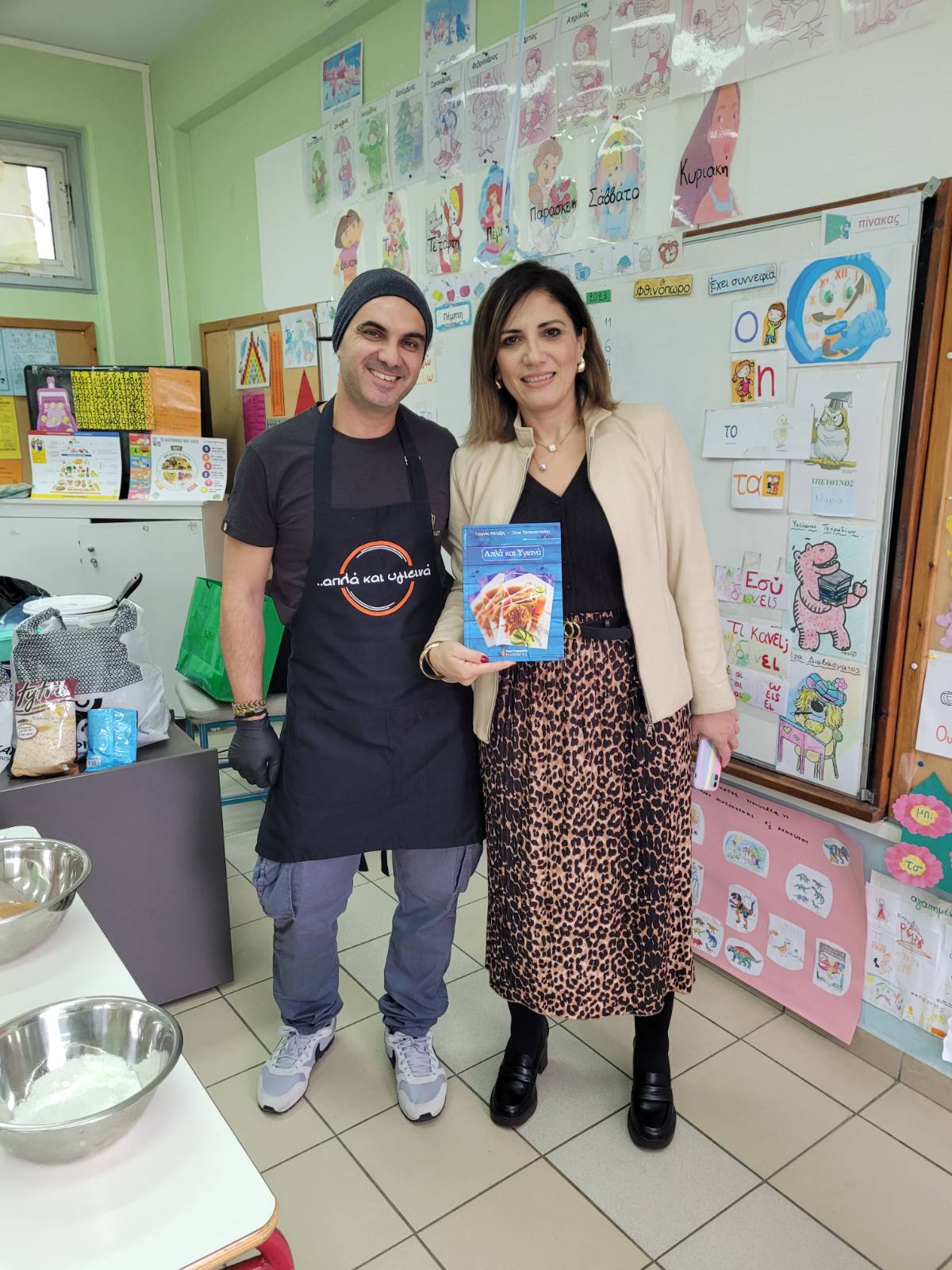 Την Πέμπτη 19 Οκτωβρίου 2023 οι μαθητές του Β1 και Β2 τμήματος του 5ου Δημοτικού σχολείου Αλεξάνδρειας σε κοινή δράση με το 1ο Δημοτικό σχολείο, υποδέχθηκαν τον σεφ Γιώργο Μεταξά. Ο σεφ ως άλλος Jamie Oliver επισκέφθηκε το σχολείο μας και μύησε τους μικρούς μάγειρες στα μυστικά της υγιεινής διατροφής. Μαζί μαγείρεψαν απλά και υγιεινά, όπως είναι και ο τίτλος του βιβλίου που χάρισε στο σχολείο μας. Έμαθαν πληροφορίες για το επάγγελμα του σεφ και έφτιαξαν πεντανόστιμα και υγιεινά τρουφάκια. Οι μαθητές έπλασαν και δοκίμασαν με ενθουσιασμό τα τρουφάκια και στο σχόλασμα κέρασαν τους γονείς τους.