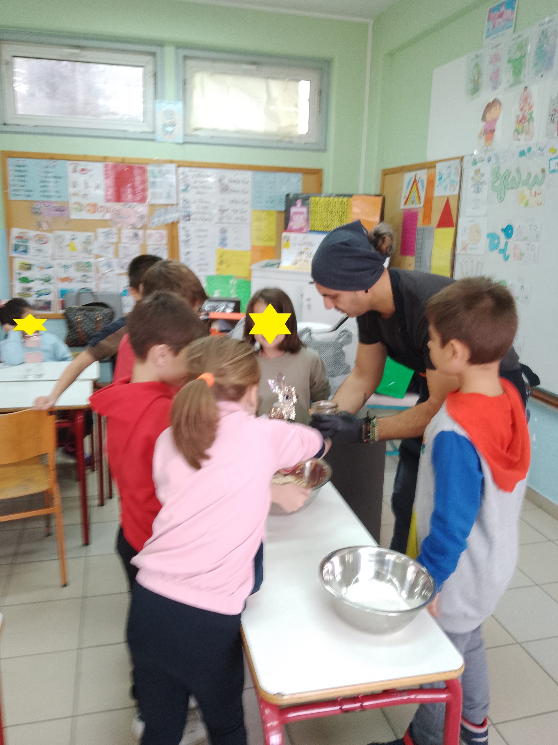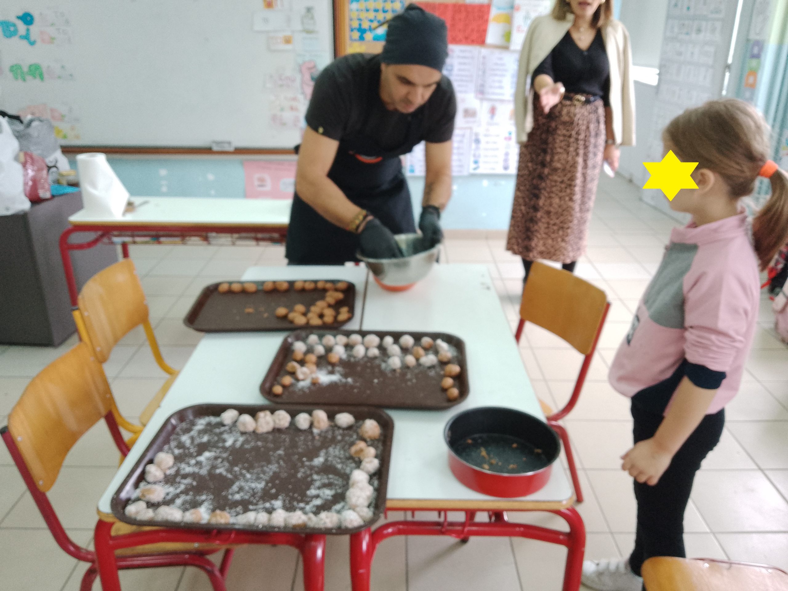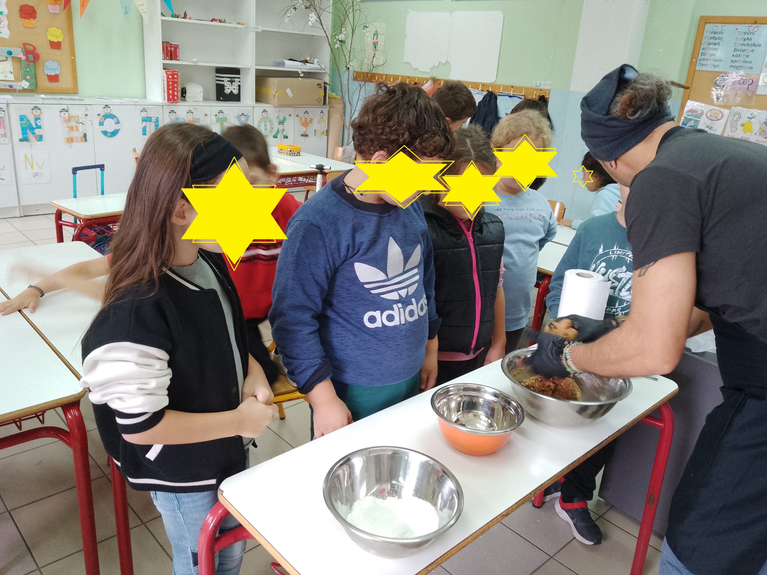 Την Πέμπτη 19 Οκτωβρίου 2023 οι μαθητές του Β1 και Β2 τμήματος του 5ου Δημοτικού σχολείου Αλεξάνδρειας σε κοινή δράση με το 1ο Δημοτικό σχολείο, υποδέχθηκαν τον σεφ Γιώργο Μεταξά. Ο σεφ ως άλλος Jamie Oliver επισκέφθηκε το σχολείο μας και μύησε τους μικρούς μάγειρες στα μυστικά της υγιεινής διατροφής. Μαζί μαγείρεψαν απλά και υγιεινά, όπως είναι και ο τίτλος του βιβλίου που χάρισε στο σχολείο μας. Έμαθαν πληροφορίες για το επάγγελμα του σεφ και έφτιαξαν πεντανόστιμα και υγιεινά τρουφάκια. Οι μαθητές έπλασαν και δοκίμασαν με ενθουσιασμό τα τρουφάκια και στο σχόλασμα κέρασαν τους γονείς τους.