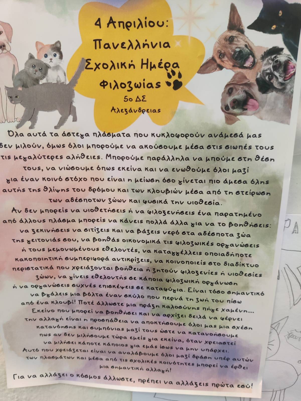 4 Απριλίου ,μέρα σχολικής φιλοζωίας.