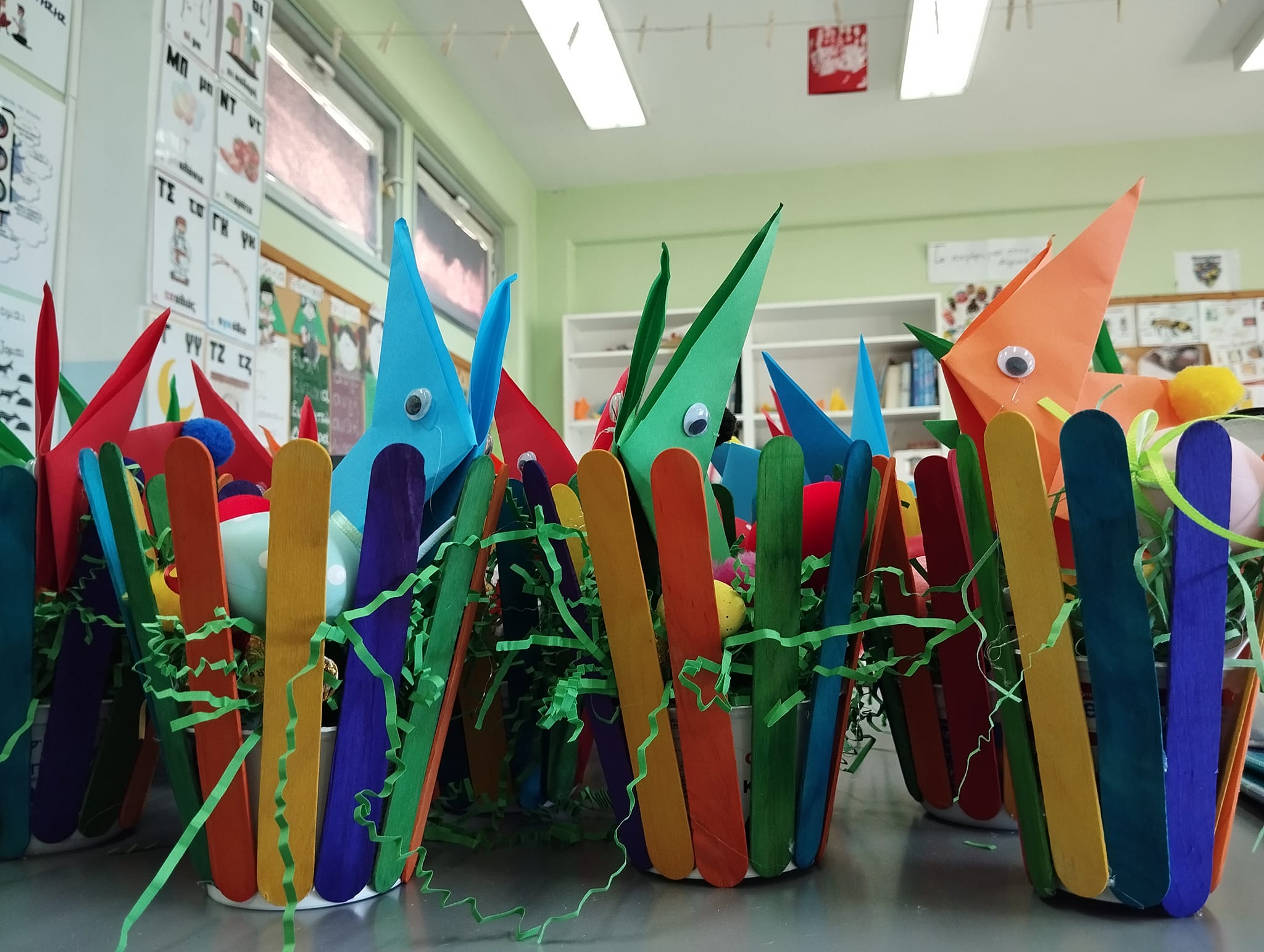 Οι μικροί μαθητές του Σχολείου μας έκαναν καλαθάκια, κάρτες, σταυρούς από κανέλες, λαμπάδες, πασχαλινές κατασκευές, έβαψαν αυγά και έκαναν μοσχομυριστά λαζαράκια με τη βοήθεια γονιών μαθήτριας της Β’ Δημοτικού , του κυρίου Βαγγέλη Τραγιαννοπουλου και της κυρίας Όλγας Μπαμπέτα.